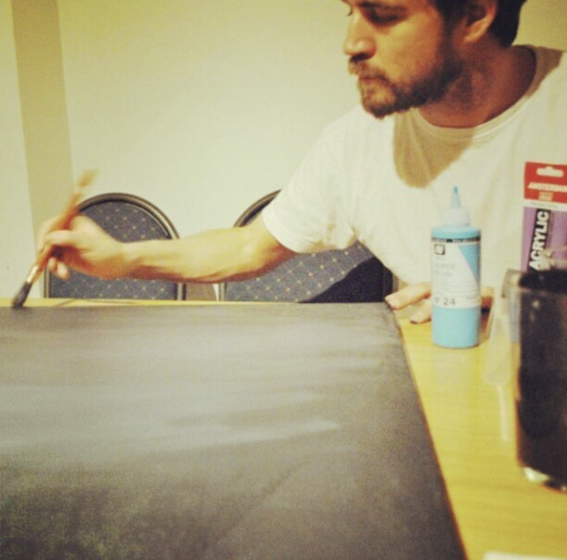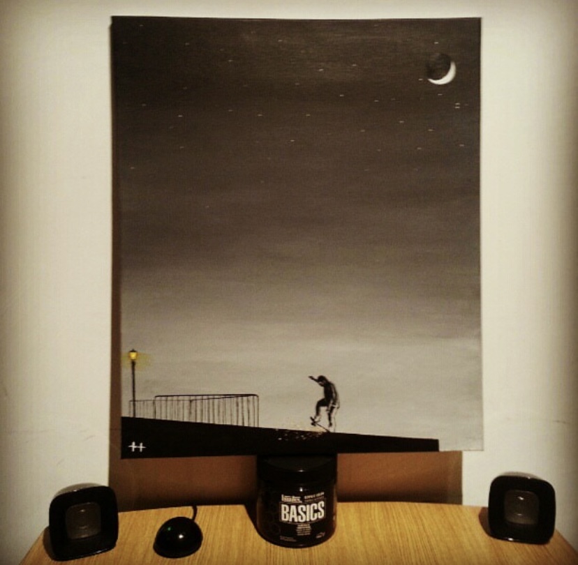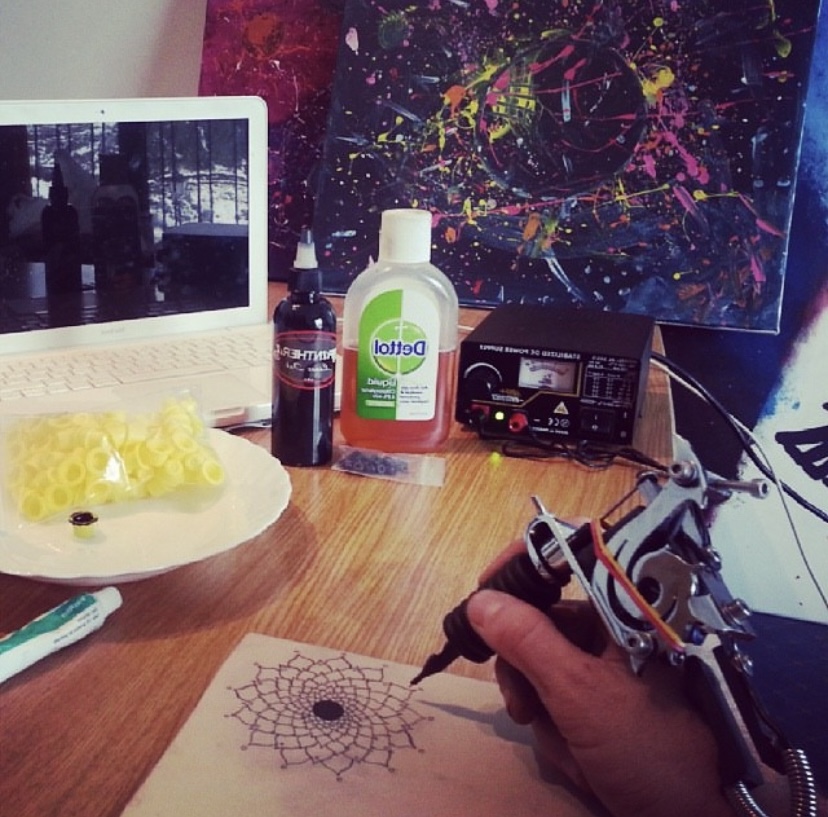 Vivíamos en una misma casa 4 compañeros del trabajo. Uno de ellos era de nacionalidad rusa, y al ver todos los lienzos y pinturas que había comprado, me pregunto si podía ayudarle a empezar a pintar a el también. Le deje el material, algunos lienzos y le explique como conseguir los colores a partir de los primarios. Después de unos días pintando, su ilusión fue tal, que me quiso agradecer de alguna forma aquel gesto. Y no se le ocurrió mejor idea que decirle a su hermano que venía de visita unos días, que trajera una máquina de tatuar para que yo la pudiese probar.