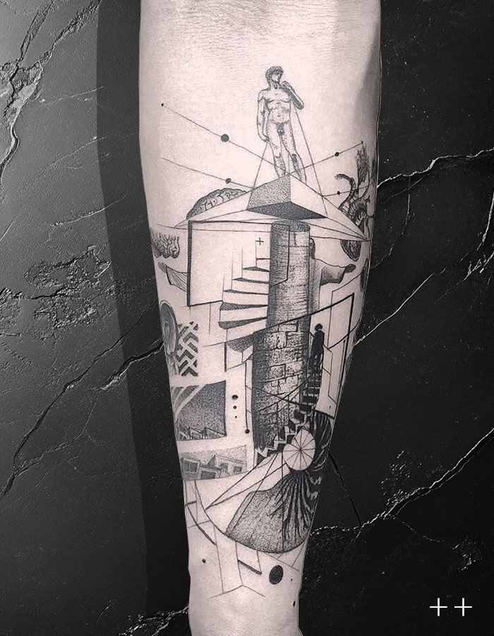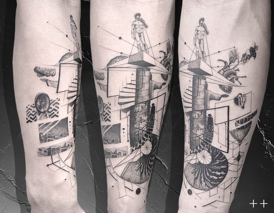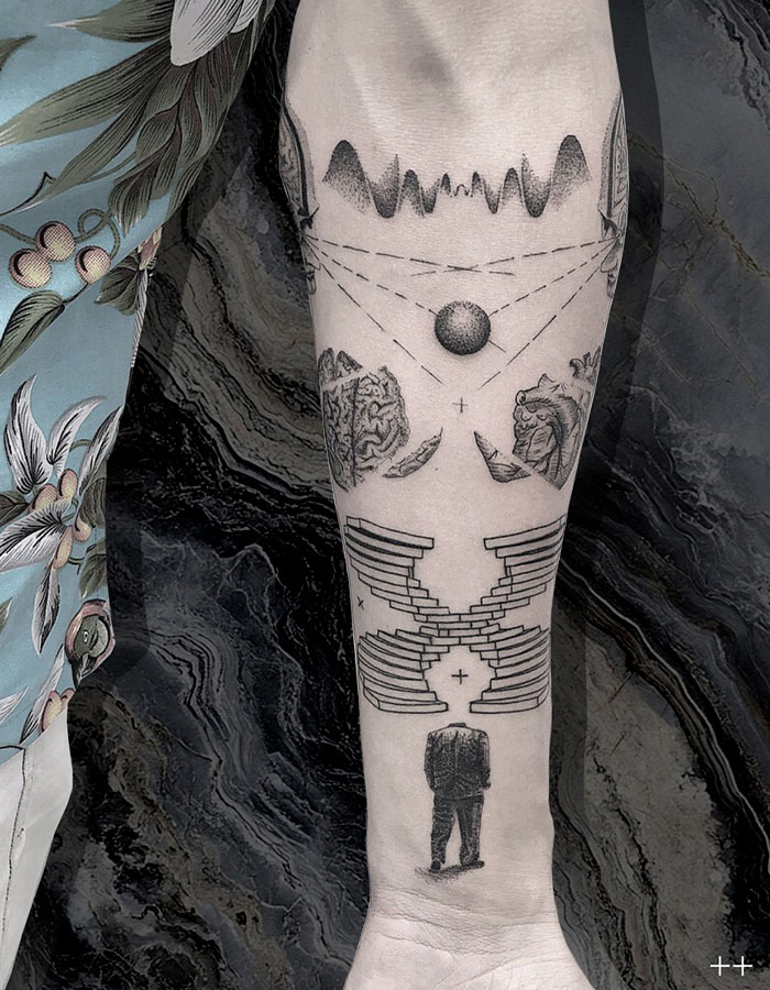 El primer año me interese por el estilo geométrico, minimalista y Fineliner, para luego ir evolucionando a un estilo de tatuaje mas conceptual, donde el significado de cada pieza cobrase aún màs importancia que la propia estética del tatuaje.
